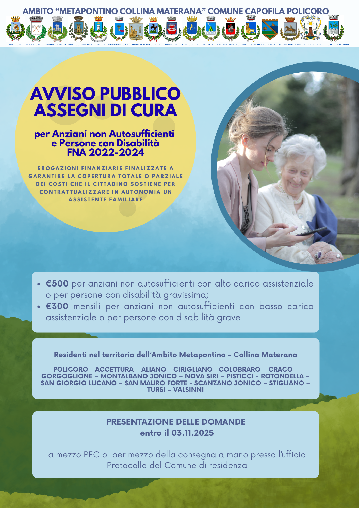 Avviso Pubblico Assegni di Cura  per Anziani non Autosufficienti e Persone con Disabilità  FNA 2022-2024 e DOMANDA DI PARTECIPAZIONE